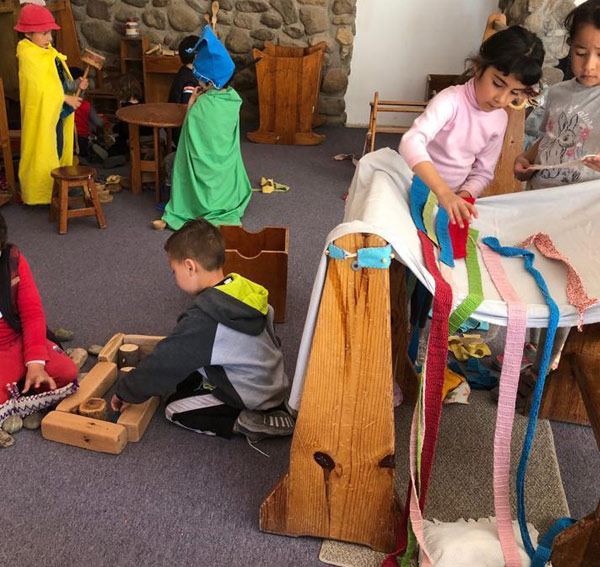 En los grados preescolares, los niños juegan a cocinar, se disfrazan, se convierten en diferentes personajes, cantan pintan y colorear mediante cantos y poemas. Aprenden a disfrutar el lenguaje, aprenden a jugar juntos; escuchan historias cuentos con títeres hornean pan, modelan con cera de abeja, construyen con troncos, cajas y telas. El involucrarse por completo en tales actividades es la mejor preparación de los niño o la niña para la vida. Da fundamentos a los poderes de concentración al interés y el amor por el aprendizaje para toda la vida.